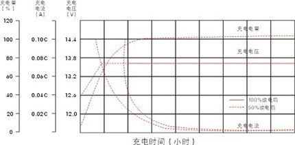 鉛酸蓄電池要求采用限流恒壓的充電方法進(jìn)行充電。在環(huán)境度為25℃的條件下,最佳的浮充電壓為13.6±0.1V 臺X臺數(shù),充電開始時的電流應(yīng)限制在0.25C10A的范圍內(nèi)。
