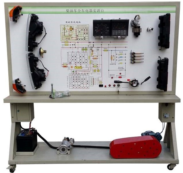 全車電路板試教板教學(xué)設(shè)備采用 全新東風(fēng)牽引車EQ2102 柴油機(jī)整車電器實(shí)物為基礎(chǔ),充分展示汽車儀表系統(tǒng)、燈光系統(tǒng)、雨刮系統(tǒng)、喇叭系統(tǒng)、發(fā)動(dòng)機(jī)電器系統(tǒng)、起動(dòng)系統(tǒng)和充電系統(tǒng)等汽車電器各系統(tǒng)的組成結(jié)構(gòu)和工作過(guò)程。