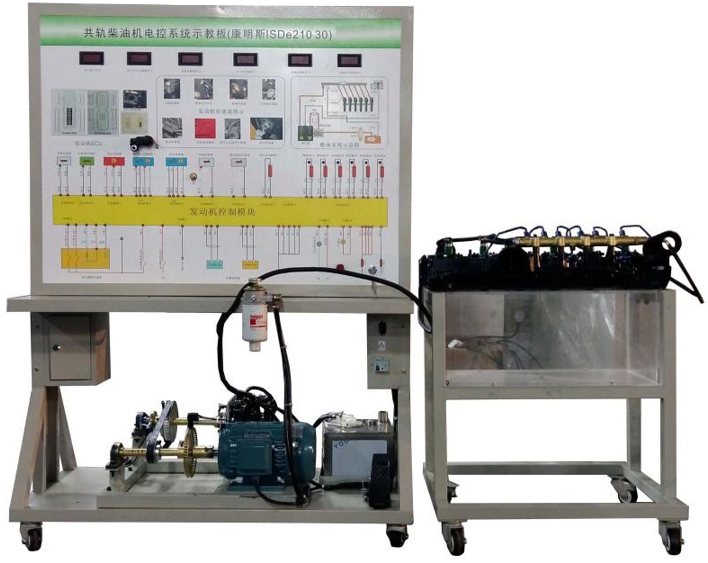 1.真實可運行的共軌柴油發(fā)動機燃油噴射系統(tǒng),充分展示燃油噴射系統(tǒng)的組成結(jié)構(gòu)和工作過程。電機驅(qū)動曲軸位置信號輪,可演示電子燃油噴射工作情況。