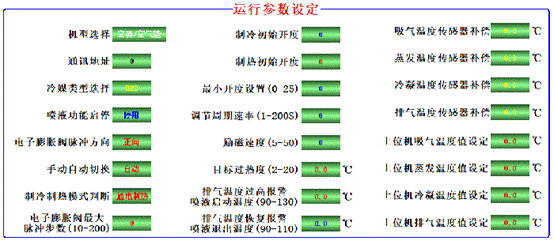 路參數(shù)控制參數(shù)設(shè)置/查詢:控制器內(nèi)所有與控制相關(guān)的溫度參數(shù)、時間參數(shù)、控制參數(shù)、等29個參數(shù)都可以調(diào)整,以適應(yīng)制冷/熱泵/冷庫/水機(jī)等設(shè)備。