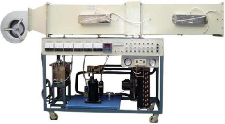 淋水室、水加熱器、空氣加熱器、風(fēng)機(jī)、水泵、水流量計(jì)、空氣流量檢測(cè)、擋水板、噴淋?chē)娮臁⒖刂啤㈦娮诱{(diào)溫電加熱器、測(cè)量裝置及干濕球溫度傳感器。不銹鋼臺(tái)架及控制柜等。