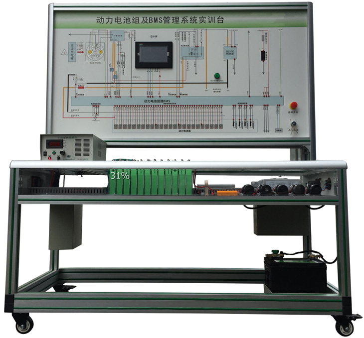 動力電池管理系統(tǒng)實訓(xùn)臺選用新能源車輛磷酸鐵鋰 動力電池包,單體電池(3.2V20AH,共24串),帶CAN總線的一體機(jī)BMS電池管理系統(tǒng),有被動均衡功能;真實地呈現(xiàn)了磷酸鐵鋰動力電池包核心零部件之間的連接控制關(guān)系、安裝位置和運行參數(shù),以及高壓系統(tǒng)安全注意事項,并培養(yǎng)學(xué)員對磷酸鐵鋰動力電池包(BMS)故障分析和處理能力。適用于了解與驗證電動汽車的動力電池參數(shù)進(jìn)行實時監(jiān)控、故障診斷、SOC估算、短路保護(hù)、絕緣檢測、充放電控制、均衡等功能,并通過CAN總線的方式與帶CAN通訊的車載充電機(jī)進(jìn)行信息交互,保障電動汽車高效、可靠、安全運行的BMS教學(xué)實訓(xùn)實驗。