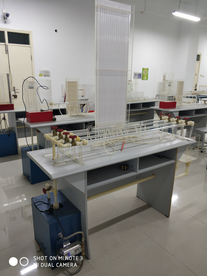 流量計測試管;局部部力測試管、伯努利測試管、孔板流量計和皮托管測試管、計量水箱(有機玻璃)、ABS回水管、上水管、低噪音水泵、控制閥等