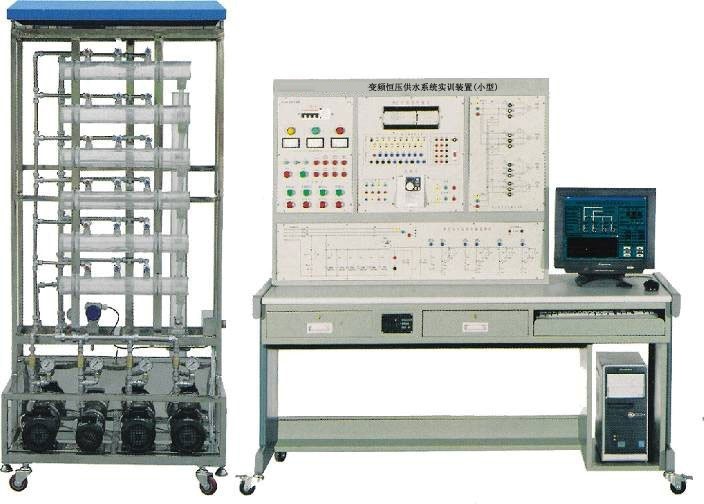 變頻恒壓供水系統(tǒng)實(shí)訓(xùn)裝置,集PLC、變頻調(diào)速、過程控制、工程組態(tài)技術(shù)于一體。它由六層住宅消防、生活供水系統(tǒng)(實(shí)物模型),控制平臺(tái)兩大部分組成,包含了可編程控制器、變頻器、變頻磁力驅(qū)動(dòng)泵、休眠泵、消防泵、壓力變送器、壓力儀表、輸水管道、消防栓、家用水龍頭、蓄水池等工程設(shè)備?刂破脚_(tái)采用PLC+變頻器的開放式控制結(jié)構(gòu),可以完成多種模式下的樓層恒壓供水實(shí)訓(xùn)實(shí)訓(xùn),為教學(xué)研究變頻恒壓供水技術(shù)提供一個(gè)開放的操作平臺(tái)。它是一款適合于大學(xué)及中、高職院校電氣自動(dòng)化、樓宇自動(dòng)化、建筑電氣、智能建筑等專業(yè)的綜合型技能實(shí)訓(xùn)考核設(shè)備。