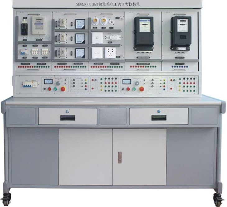 電氣安裝與維修實(shí)訓(xùn)考核裝置是根據(jù)工廠電氣安裝和室內(nèi)電氣安裝等維修 電工和電氣安裝工實(shí)訓(xùn)鑒定要求開發(fā)的一種通用實(shí)訓(xùn)平臺(tái)。 適合于各類職業(yè)院校 和技工學(xué)校維修電工、 電氣安裝工、水電工等有電氣實(shí)訓(xùn)要求的相關(guān)專業(yè)的作為 公共實(shí)訓(xùn)平臺(tái)使用。 采用鋼制網(wǎng)孔板和鋼制專用型材組接而成,安裝有自鎖式腳輪,方便移動(dòng)和使用。裝 置表面噴塑,色彩穩(wěn)重氣派。電氣安裝與維修實(shí)訓(xùn)裝置設(shè)計(jì)高度以人站在一級(jí)人字梯即可方便操作的高度,既安 全又能使使用者感受到施工現(xiàn)場(chǎng)環(huán)境。 橫向、 叢向?qū)挾群线m, 可以模擬現(xiàn)場(chǎng)線路的轉(zhuǎn)向布置。