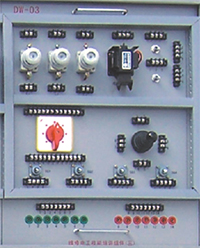 交流電源:①、設有變壓器一組,變壓器原邊根據(jù)不同的接線可加220V,也可以加380V交流電源,合上開關后,變壓器副邊即可輸出36V、110V、20V、20V12V6.3V的交流電壓;②、設有單相調(diào)壓器一組,可得到交流0250V可調(diào)電壓;③、控制屏設有單相三極220V電源插座及三相四極380V電源插座。
