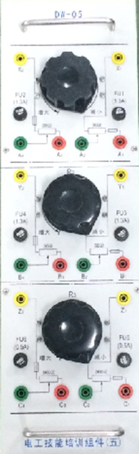 掛箱上已安裝有熔斷器、鈕子開關、交流接觸器、時間繼電器、直流接觸器、按鈕開關、信號指示燈、熱繼電器等,所有器件均采用國內(nèi)外知名品牌。各種實訓元器件的接線都在接線端子排上進行接線,避免了因長期在器件本身進行螺絲拆裝而導致元器件的損耗,通過走線槽走線,進行工藝布線訓練。實訓電路與裝置電源的連接通過安全插座和高可靠護套結(jié)構(gòu)手槍插連接線,安全快捷。